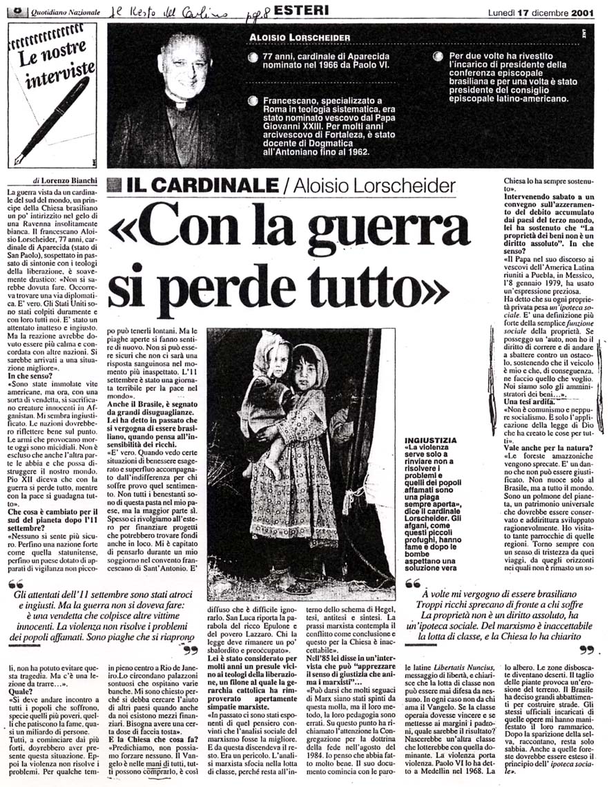 il Cardinale Lorscheider (1924-2007) si esprime contro la guerra.